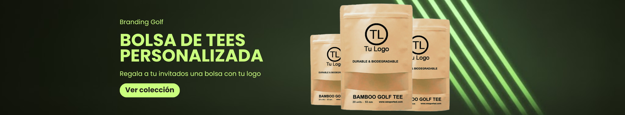 En Wesported sabemos que el golf es mucho más que un deporte. Somos especialistas en transformar tu imagen de marca en cada detalle para el jugador. Nuestra línea de ropa de golf personalizada, accesorios de golf con logo y packs de regalo personalizados para torneos está pensada para que tu club, evento o empresa estén representados con profesionalidad.